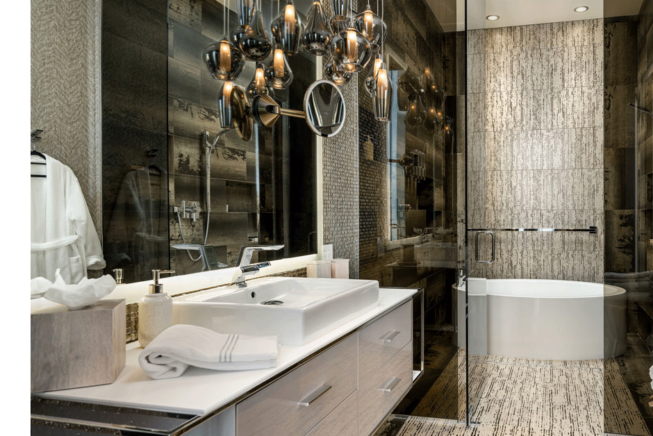 The winner of Best Overall Bath was Jaque Bethke, Founder and Principal Designer of Scottsdale, AZ-based Jaque Bethke Design, LLC, for “Small But Mighty.” The striking design, which took top honors in the Secondary Bath category, was for a client who requested “a masterpiece” as part of a total home remodel. The judges lauded Bethke’s use of tinted glasses to separate the wet room and give dramatic proportion to an otherwise shoebox shape, as well as the dynamic opticals achieved with a floating vanity, large mirror and textured tile. Photo credit: Phil Johnson/Provisionals Media