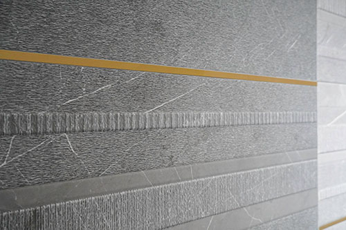 Texture is King. With so many screens in consumers’ lives, many are drawn to tactile experiences. This is a trend we’ve been seeing for some time in wood-look tile and manufactured stone, but some companies are taking it a step further and creating unique textures and patterns that haven’t been seen before. The Carven Collection from Gayafores includes a mix of honed pieces and delicately striped tiles for a mix of feels.