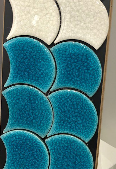Fish Scales & Art Deco. Art Deco was an expected trend, and its influence was seen in the colors and patterns manufacturers are offering. One of the most used patterns was the fish scale; it’s natural influence and the movement it evokes work well across different blends of wall tiles in particular. Shown here is glazed Malla from Cevica, which is available in a number of custom colors.
