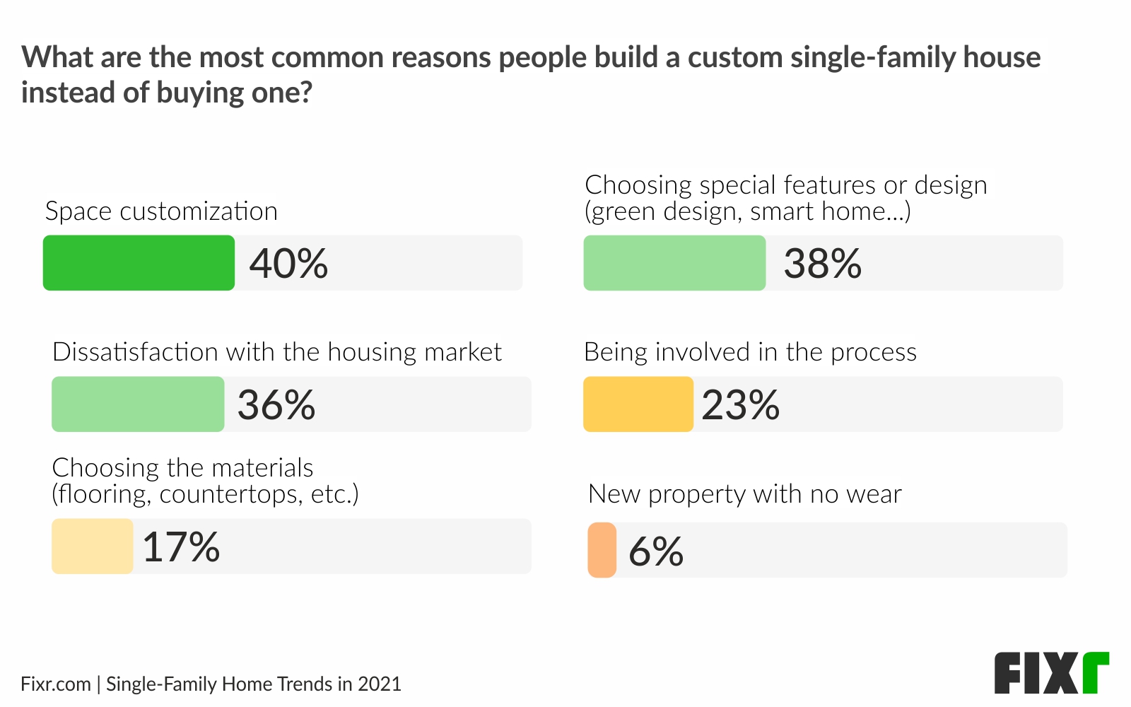 For this report, Fixr.com surveyed 48 top experts in the home construction industry. Each of the professionals who responded have acquired vast experience and are currently working in the building, remodeling or landscaping fields. To gain a better understanding and inquire about the latest single-family home trends, they were each asked a mix of open-ended and multiple choice questions.