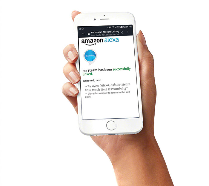 MrSteam residential steam shower systems now work with Amazon Alexa when SteamLinx is installed. Homeowners can “talk” to their steam shower through Alexa, ask questions, get helpful answers or give basic commands to the system. Common commands include turning on the steam generator and setting the temperature or duration.