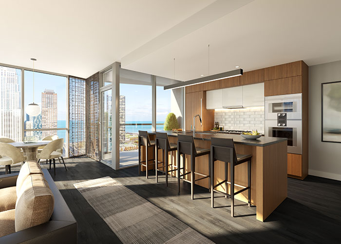 “We programmed smaller plans into our unit mix because, during this housing cycle, virtually all of the new construction has been larger units at higher price points,” said Ted Weldon, executive general manager at Lendlease. “Yet we’ve seen that even among buyers who can afford a three- or four-bedroom condo, some don’t necessarily want that much space. At Cirrus, we’re able to accommodate those in search of a full-time residence in a prime lakefront location, as well as those who need only one bedroom, whether they’re downsizing from a single-family home, trading up from an apartment, or simply looking for a second home in the city.”