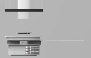 The initial inspiration was the hearth as the focal point, which ultimately drove the design. The final design is a circular formation with high functionality. The fire pit is at the center surrounded by layered surface styles and elements necessary for a kitchen, such as a dishwasher, food preparation area, sink, storage space and a waste compartment.