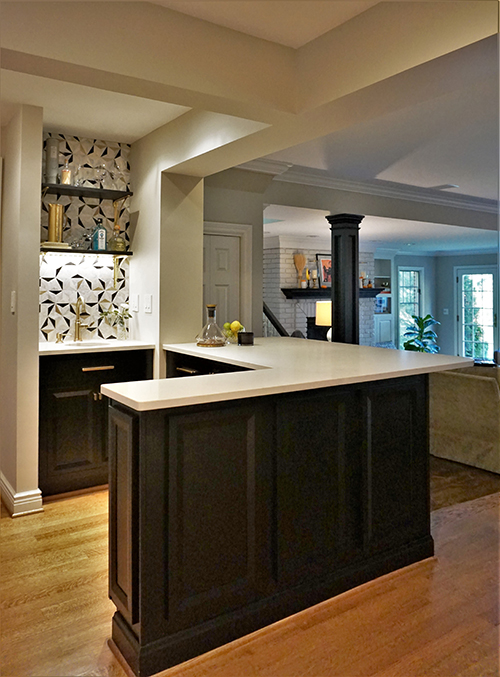Since most consumers are mixing their drinks at home these days, many are going to start looking to create designated bars in their own spaces. Designer Jennifer Hutton of Buffalo, N.Y.-based Artisan Kitchens and Baths recently created this fun wet bar and shared her insights.