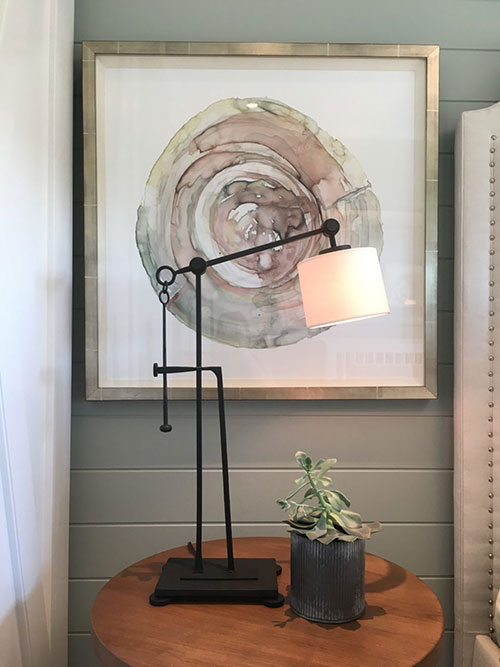 Adding calming colors from nature – such as blue and green – and natural light can be restorative while reducing stress and stimulating creative thought. Since we spend so much time indoors, it is best to layer lighting in your home. Start with amplifying any natural light source you can – if it is coming from a window or skylight, the view and ventilation can contribute to your well-being, too. Next add dimmable ambient light above and accent and task lighting below. Often task and accent light sources can also add to the design.