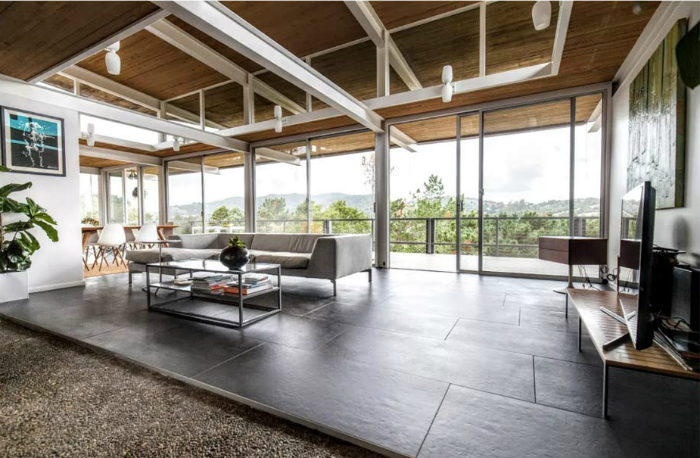 One of California’s historic Case Study Houses, and the only one built in the San Francisco Bay area, #26 in San Rafael was designed by architect Beverley David Thorne in 1963. After purchasing the house 2015, the current owner/architect, Cord Struckmann, undertook a thoughtful remodel that included replacing the floor finishes in the common areas. Previously covered with carpet and vinyl tile, the project required the careful selection of a durable material that could also contribute to the design integrity. This led to the selection of Gigacer’s Concrete line, which matched the mid-century modern aesthetic of the house. The minimalist, large format tiles blend seamlessly with the structural bones of the house and the modernist décor, unifying the common areas and elevating the role of the floor in the space.