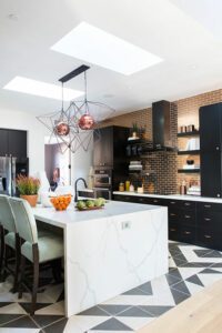 The adorne Collection Pop-Out Outlets on the kitchen island make plugging in small appliances accessible, but they disappear when you don’t need them. They come in both magnesium and white, and their striking form makes them like jewelry for the space. Samsung’s Family Hub Refrigerator lets family members leave notes for each other, create shopping lists and see inside the refrigerator from a compatible smartphone.