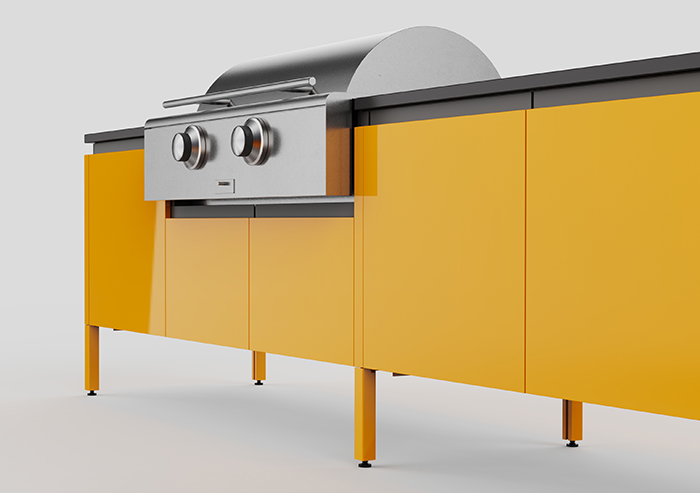 Brown Jordan Outdoor Kitchens: Elements is the brand’s collaboration with architect and designer Daniel Germani. The modular, furniture-inspired collection empowers outdoor living spaces for any footprint, with a variety of sizes and appliance options available. Built to withstand any climate, Elements consists of stainless-steel modules and is available in dozens of powder coat finishes, including a yellow similar to Pantone‘s Color of the Year 2021 selection.