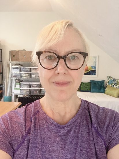 So many people have been broadcasting and Zooming from home, and it’s been fascinating to get a look into other’s homes and office. I have been surprised by some of the cluttered and unattractive backgrounds I’ve seen. Even some of the high-profile newscasters and TV personalities have distracting backgrounds. I am no exception to this. My studio does not work for me as a Zoom background. In fact, it appears cluttered and distracting. The last thing I want is my client not listening to what I have to say because they are so busy looking at the “stuff” behind me. You only need to look at that second image to see the fabric boxes and other distractions, and that is the organized area of my studio!