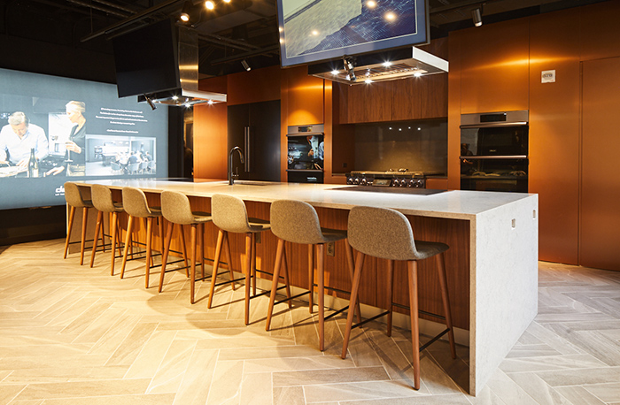 The space also features a Design Studio dedicated to offering clients a dedicated space, inclusive of a library wall and an interactive design screen where designers can seamlessly access samples, create integrated digital flipcharts and determine supplies needed during a consultation to customize any kitchen. Additionally, a professional cooking demonstration space allows for programming and product education for interior designers, dealers, homeowners and media audiences. This space will be utilized for classes and demonstrations throughout the year with programs choreographed by Dacor’s in-house Chef Stephen Hualde.