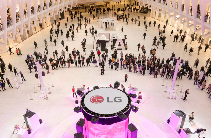 Throughout the afternoon and evening yesterday, consumers in the Oculus were treated to Huang’s creative interpretations of DNCE’s “Cake by the Ocean” and Dua Lipa’s “Blow Your Mind.” Huang’s vibrant music videos filled a 15-foot-tall 360-degree curved LED screen on LG’s main stage in the Oculus, which served as a dramatic backdrop for LG’s engaging performance.