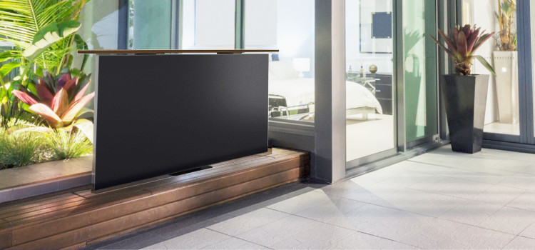 The TV Floor Lift mechanism from Future Automation is a custom-designed mechanism that allows a flat screen to be stored in a floor out of sight. The walk-over flap mechanism allows for a seamless transformation from the concealed to the revealed.