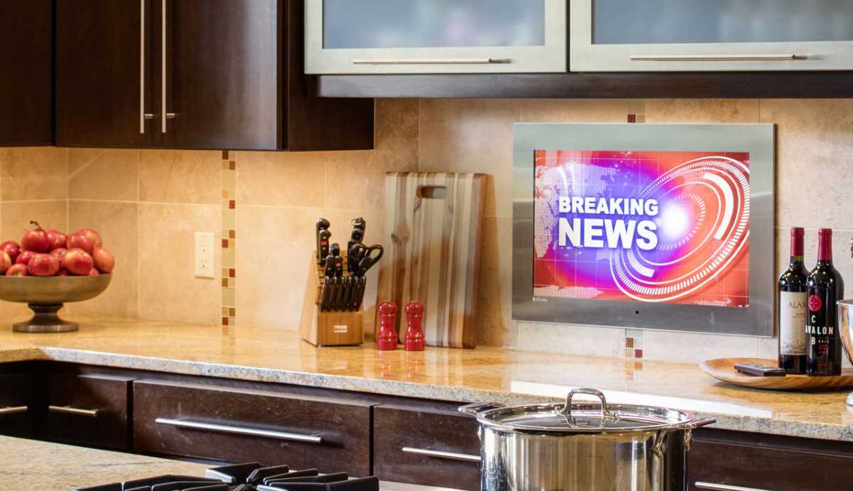SEURA’s Hydra Waterproof TV is an ideal entertainment solution for a wet space like a shower or above a kitchen sink and comes in finishes like stainless steel, brushed gold, polished chrome, black onyx, pearl white and other custom colors.