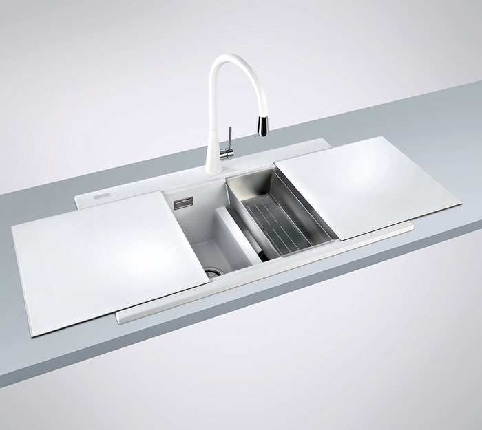 “We derive our inspirations from the material. Traditionally, kitchen sinks have always been made with either stainless steel or cast iron. We look for novel materials in the industry that can be used to craft a kitchen sink that is better both in form and function. Sometimes these are materials that can only be sourced from specific regions in the world. We also look for materials that can interact together. This helps us design accessories that fit seamlessly with the sinks.”