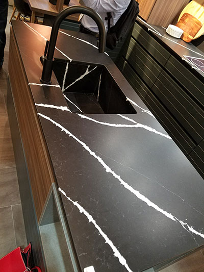 The Eternal Collection is the first Silestone Collection to be released on the market with N-Boost technology. Silestone N-Boost achieves a greater intensity of color and surface brightness and makes cleaning and maintenance easier, thanks to the water-repellent property of the material. Shown here is Eternal Marquina, which is evocative of the Spanish Black Marquina marble.