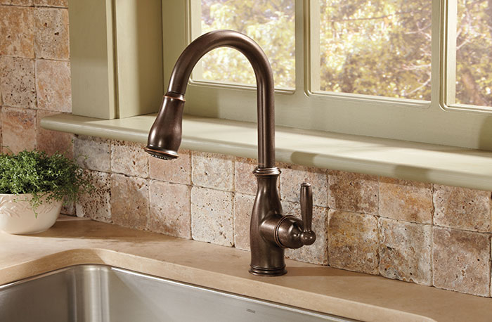 The Brantford Faucet features a classic look created by lever handles and a tapered spout. The 4-in. center-set design allows for easy installation, and the faucet meets EPA WaterSense criteria to conserve water without sacrificing performance. Now with Power Boost technology, the pulldown spray wand also provides a faster flow of water at the push of a button.
