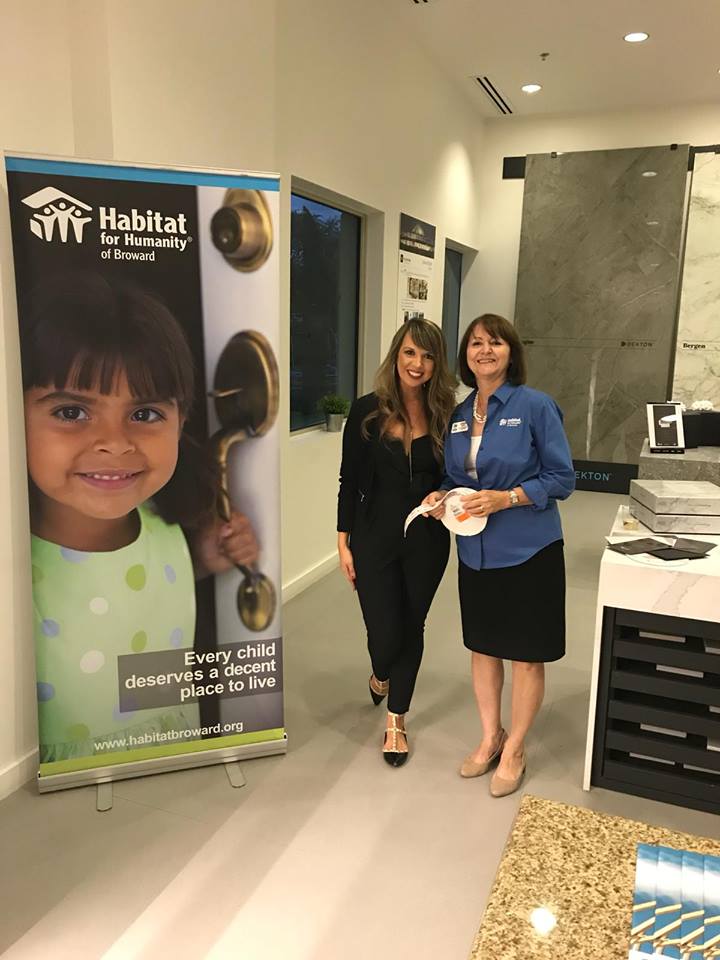 Pictured: A member of the Cosentino Fort Lauderdale Center staff and a representative of Habitat for Humanity of Broward