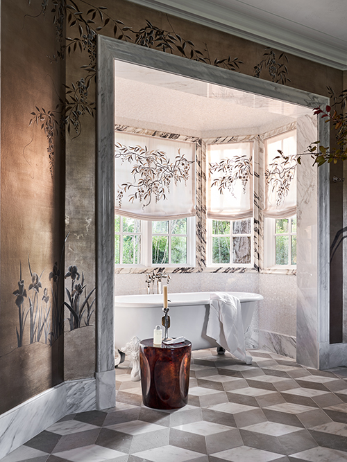 Goals: “My first intention was to bring architectural integrity to the space and create fluidity from the master bath into the adjacent dressing suites. From there, I wanted to elevate daily rituals, such as taking a moonlight bath or dressing for the day, and frame them as luxurious, restorative moments to be savored. The space is classically rooted with unexpected moments. For example, we used very classical Kohler plumbing and an atmospheric de Gournay wallpaper that brought a sense of romance to the master bath.” – Moore