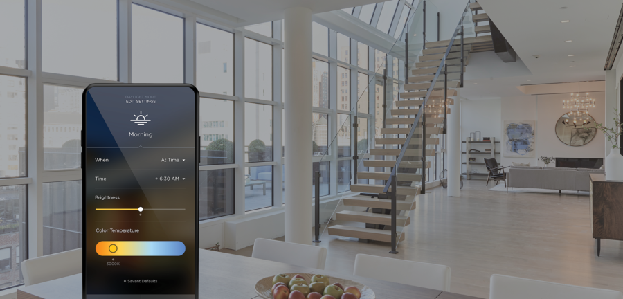 Smart home automation company Savant gives the user full and remote control over their home’s lighting systems for a more natural experience. Use the settings on a smart home app to warm a tub before returning home from work or lower and warm the lights to relax before bed. The thermostat, security system and sound speakers can also be manipulated for a full-home-controlled experience.