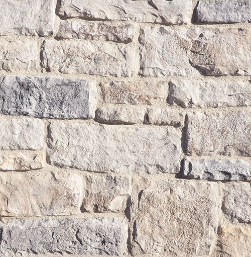 Grand Banks Limestone from Eldorado Stone is an architectural stone veneer that balances cream and silvery blue hues with accents of rust and gray-green tones.. This chiseled profile conveys traditional formalities and is roughhewn into a rectangular shape for a natural but sophisticated look.