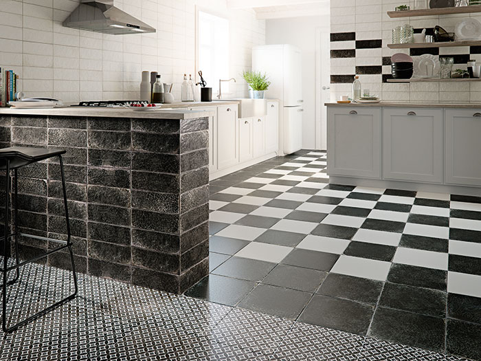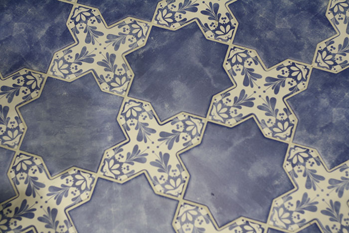 The desire for more handcrafted materials was evident at the show, and manufacturers are working to make this rustic look more accessible at lower price points. Tempo from Natucer (top image) uses random digital ink patterns to create what looks like natural variations in a handmade ceramic tile, and Becolor’s Cross from Cevica Decorative Tiles similarly boasts an artisanal and traditional pattern in a blue and white ceramic tile.