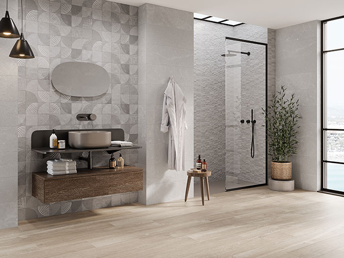 Since consumers are showing a preference for more demure tile designs, shading is becoming vitally important. The simplest and most effective way to manipulate shade is through texture. Collections featuring these surfaces will offer spaces a sensory experience full of depth and interest.