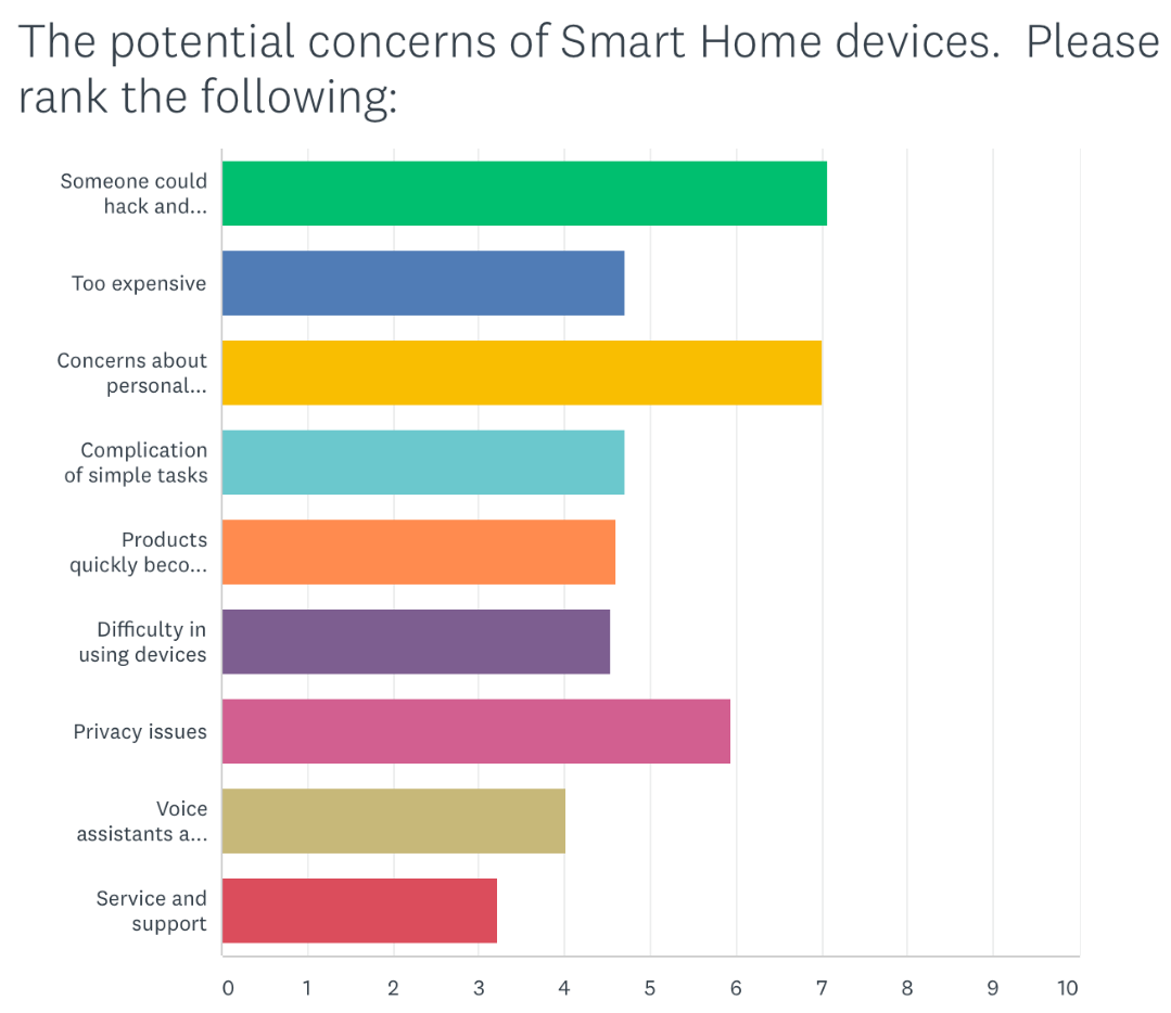 The IFDA survey taken in 2010 predicted that by now much home equipment and many home furnishings would be activated by voice and sensor. That has not come true to the extent predicted, but this year’s survey also foresees continued growth in the popularity of voice and sensor activation. Hacking and privacy concerns were listed as top reservations about the smart home. Note: earlier complaints that technologies complicate simple tasks and were difficult to use were not as much of a concern (it appears that we, too, are getting smarter!).