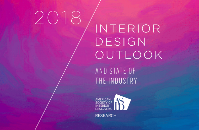 The American Society of Interior Designers (ASID) released its 2018 Outlook and State of the Industry (OSI) report yesterday, providing a scan of essential knowledge interior designers and the interior design industry require to thrive and remain competitive in 2018 and beyond. The 80-page ASID OSI explores the status of the U.S. economy as a whole and offers an in-depth look at the interior design and construction industries specifically; discusses current trends in design and their implications for the profession moving forward; and concludes with a look at the societal and technological advancements that will influence the interior design industry into the future.