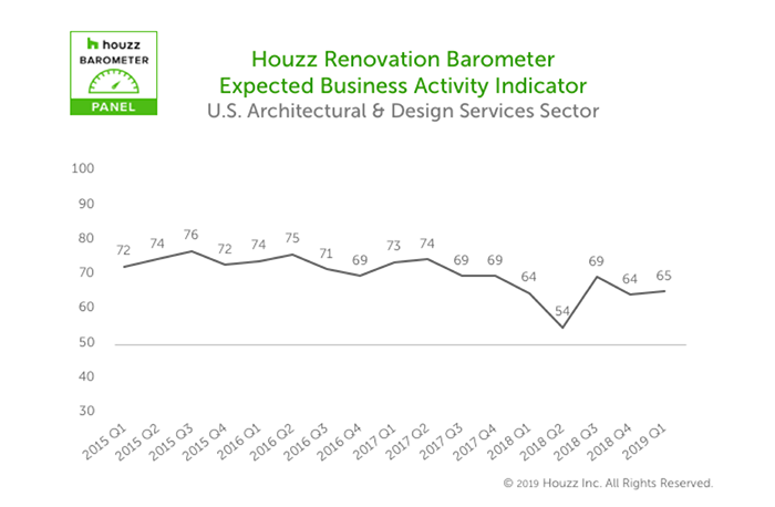 Houzz Inc., a platform for home remodeling and design, has released the Q1 2019 Houzz Renovation Barometer, which tracks residential renovation market expectations, project backlogs and recent activity among businesses in the construction sector and the architectural and design services sector. The Barometer points to mixed expectations for home renovation market activity in the first quarter of the year.
