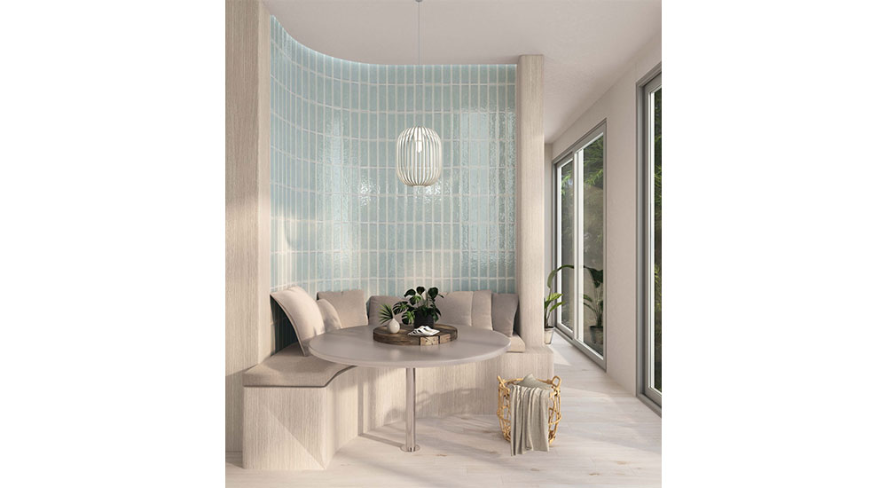 With Maxime (shown above), deep and moody hues create restful backdrops. The collection offers two finishes, matte and gloss, that can be blended to create intricate details with lighting and dimension. Maxime is available in six colors in a 2.7” x 9.4” format with two distinct finishes – matte and gloss. This unique range allows for an array of combination possibilities, ensuring each room can boast its unique character.