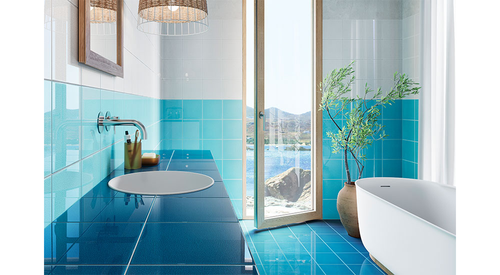 Ceramic and porcelain are particularly making waves in the kitchen and bath space, not only for their visual appeal, but for their outstanding performance. As a naturally hygienic, stain- and scratch-resistant material that is easy to clean and highly durable, tile is a preferred choice for countertops and other high-use kitchen surfaces. With sizes up to 5.25 by 10.5 feet, these tiles can be laid in one piece or easily cut to size, and coordinate perfectly with surrounding surfaces for a seamless design. In the bathroom, Italian tile design is also redefining what’s possible with prefabricated vanities, tailor-made washbasins, and integrated sinks that combine the elegance of ceramic and porcelain with the practicality of ready-to-install solutions.