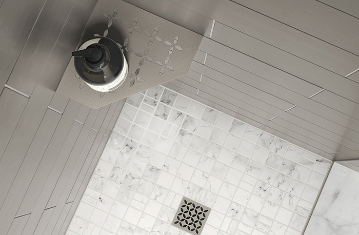 Products December 20Trendline textured finishes are now available for the Kerdi-Drain-Style series and the Schluter-Shelf shower shelves.