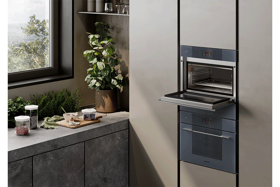 The revolutionary 3-part Vitality System from SMEG is comprised of a Blast Chiller, Vacuum Drawer, and Combi-Steam Oven.