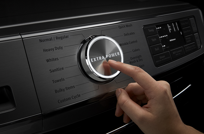 Maytag introduces its new front-load washer and dryer with Extra Power button.