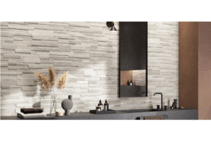 Texture Takeover includes the looks of rugged stone, metal, wood texture, as well as matte and glossy finishes, which all persist in tile aesthetics and interior design. These designs not only introduce depth but also contribute to a multi-sensory experience, resulting in a harmonious and inviting visual appeal.