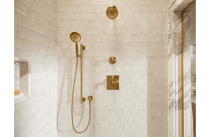 I like the clean aesthetic of the Kohler Purist Shower System. It is a great choice for projects with tighter budgets. The system comes in a variety of finishes. In terms of GPM, this model ranges from 2.5 to 1.75; I always specify the 1.75 so substantially less water is used.