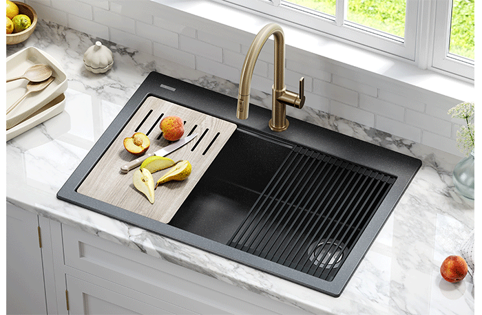 With consumers spending more time at home than ever before, it follows that there is a heightened focus on the quality and character of the spaces we live in. Our kitchens in particular have gained a newfound importance – serving their traditional function, as well as emerging as a nexus for socialization and family gatherings. With these changes, there is a growing need for fixtures that can rise to the occasion and fit seamlessly into the multi-faceted lives of today’s homeowners. Kraus USA’s Bellucci™ Granite Workstation Sinks offer a dynamic solution for the wide variety of newly emerging consumer needs.