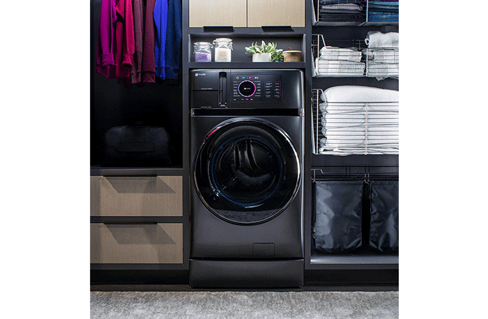The heat pump technology of the GE Profile UltraFast Combo delivers 50% more energy-efficient drying. The ventless design also supports installation flexibility. Instead of having to plan around exterior venting, the appliance can be located anywhere with a water hookup. Photo credit: GE