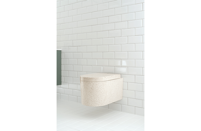 The Block Toilet by Woodio is made of a mixture of wood chips and resin-based adhesives, designed to be a sustainable alternative to ceramics and other non-renewable materials with a high carbon footprint. Impact- and scratch-resistant and 100% waterproof, it requires no special cleaning agents. Photo credit: Woodio